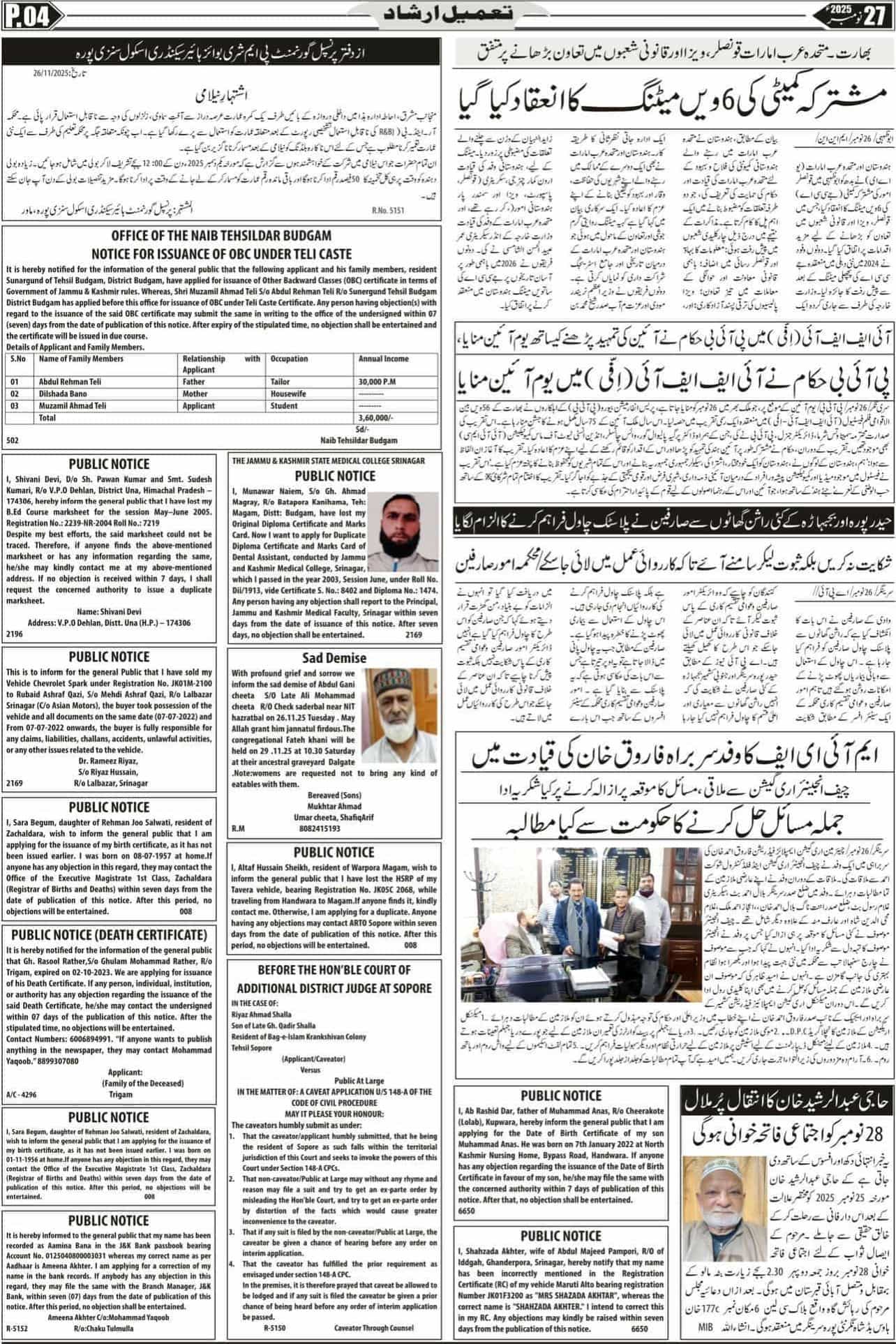 Tameel Irshad - Leading Urdu Newspaper Of Jammu & Kashmir