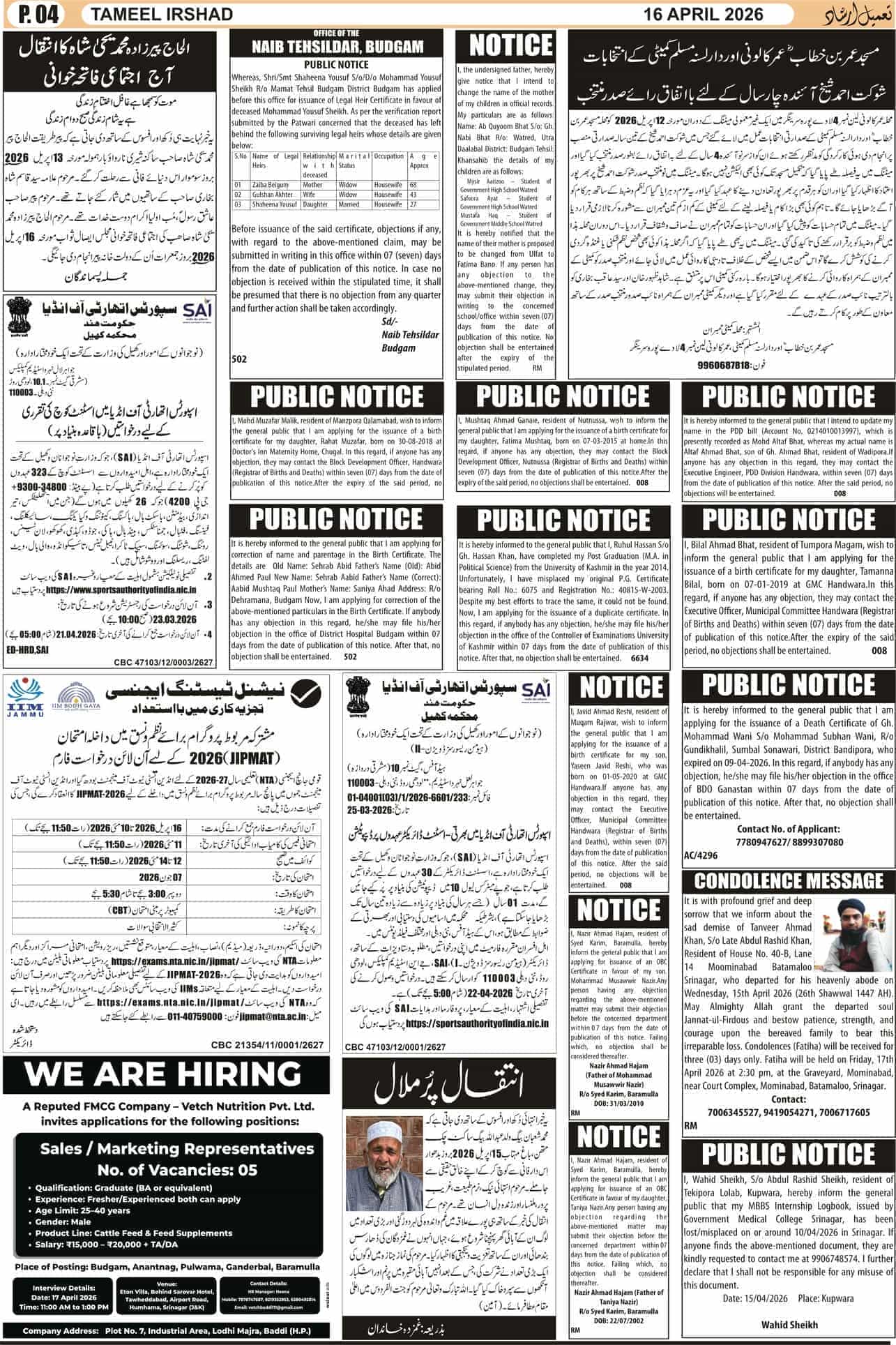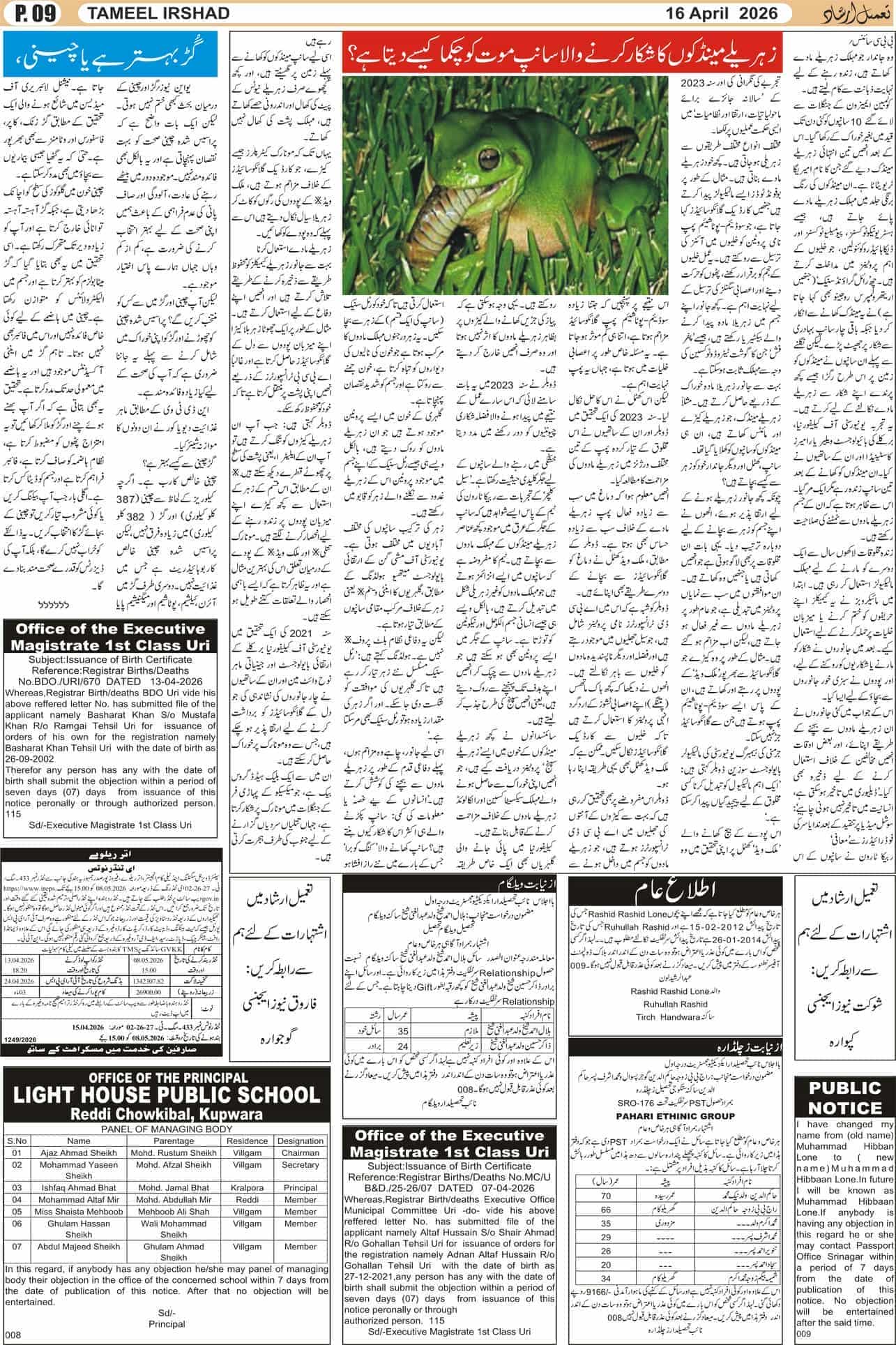 Tameel Irshad - Leading Urdu Newspaper Of Jammu & Kashmir